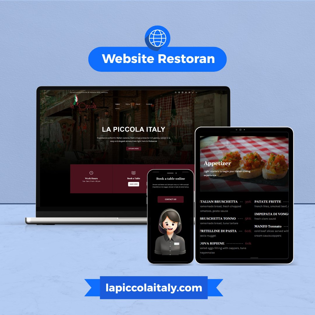 Ideal untuk restoran, kafe, atau bisnis kuliner yang ingin menampilkan menu, foto makanan, lokasi, dan sistem reservasi.
